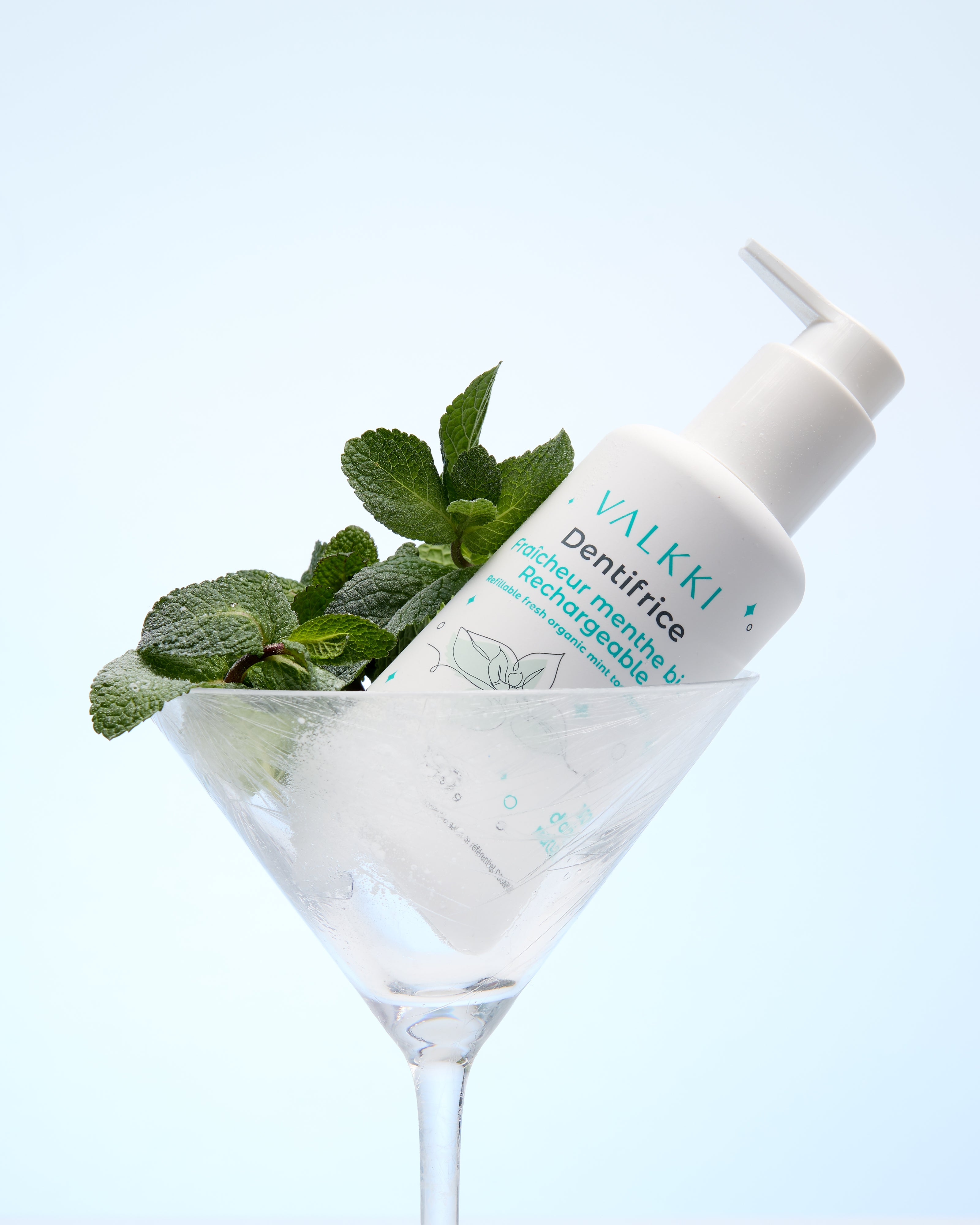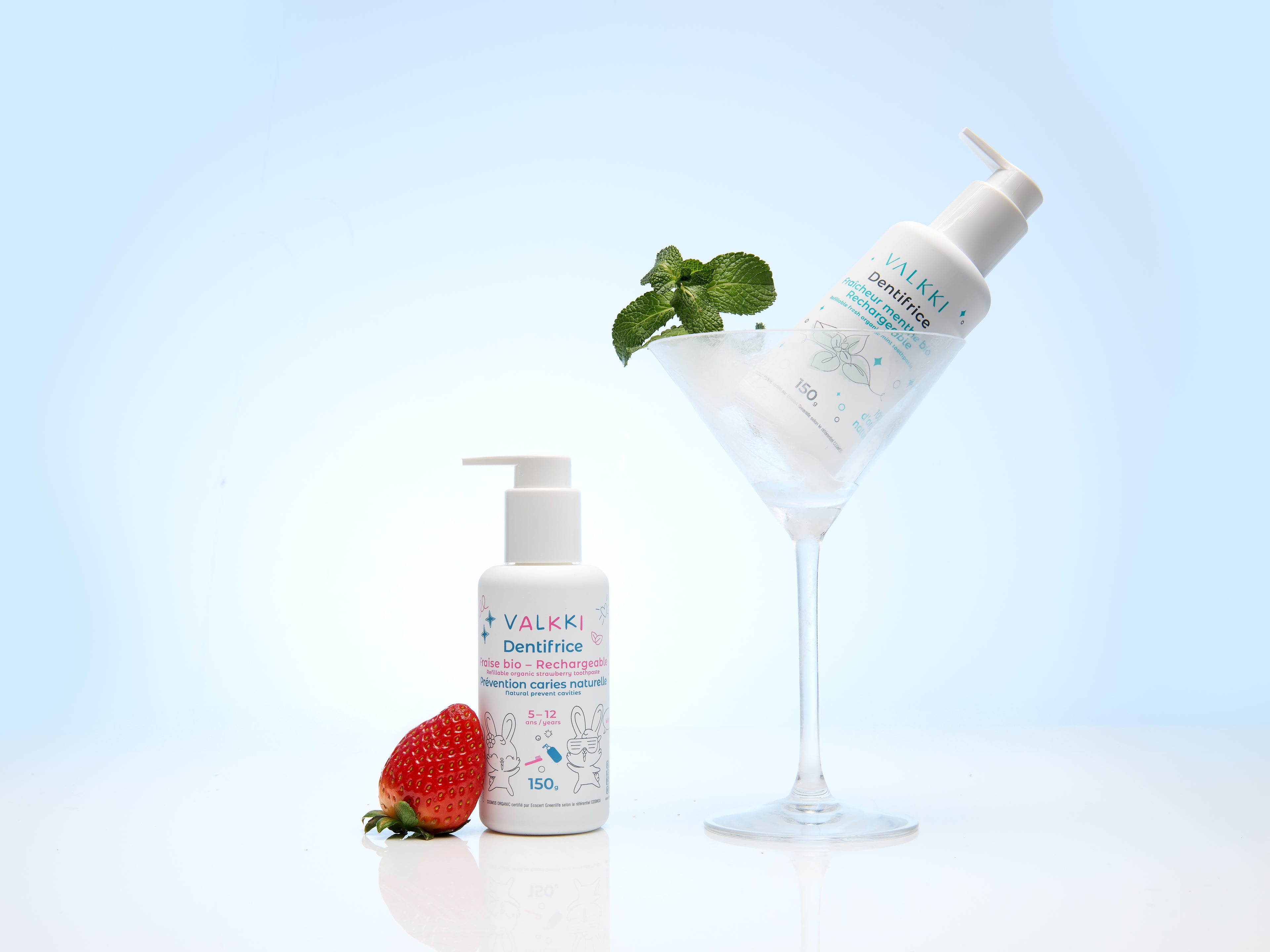 Grâce à nos recharges 100% recyclables, il vous est désormais possible de recharger vos flacons Valkki. En plus d’éviter des déchets superflus de plastique, nos contenants volumineux permettent d’en profiter jusqu’à 125 brossages.